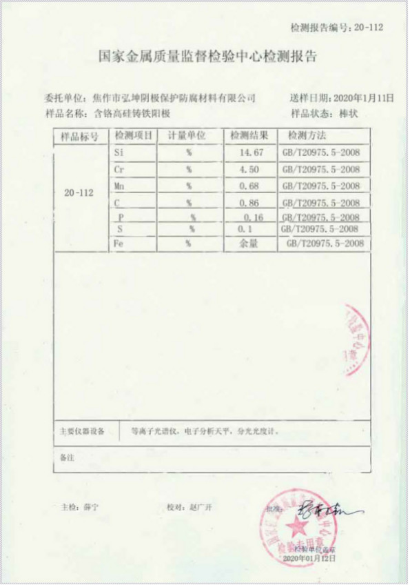 高硅鑄鐵犧牲陽極檢驗報告2